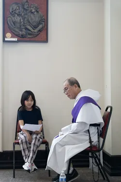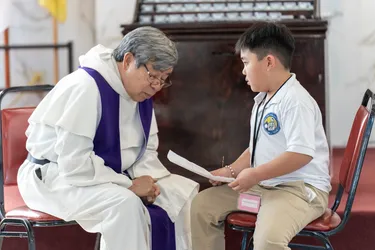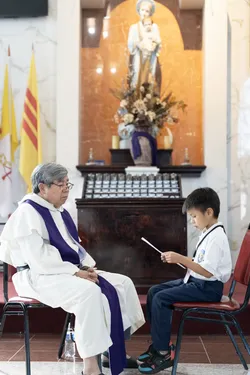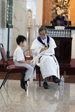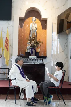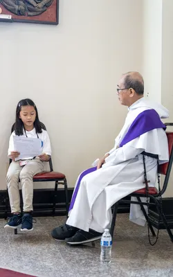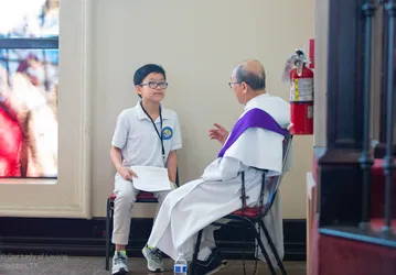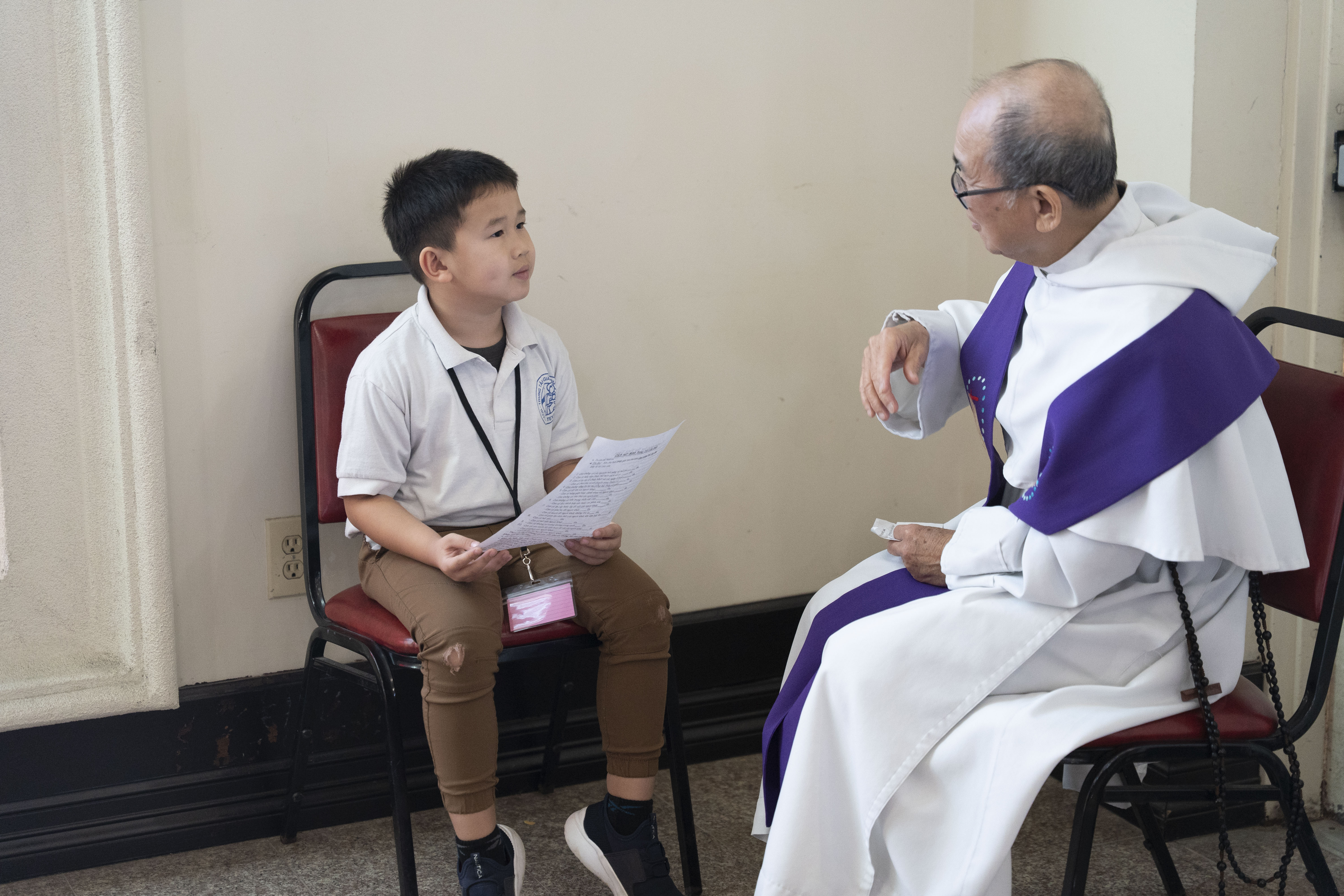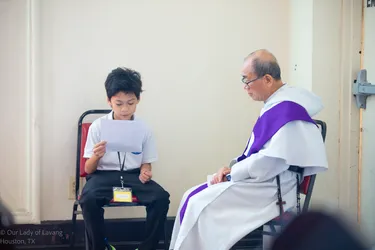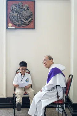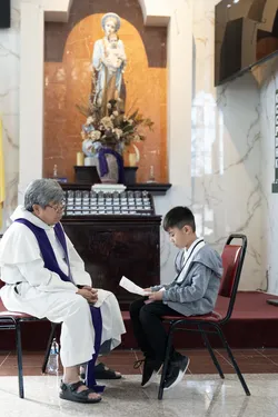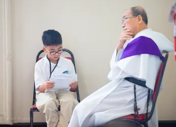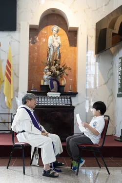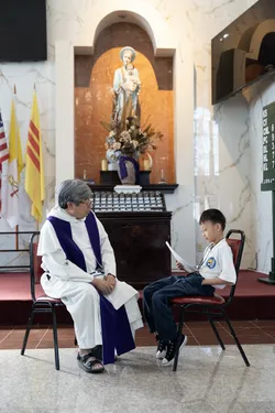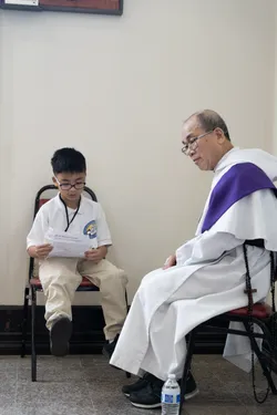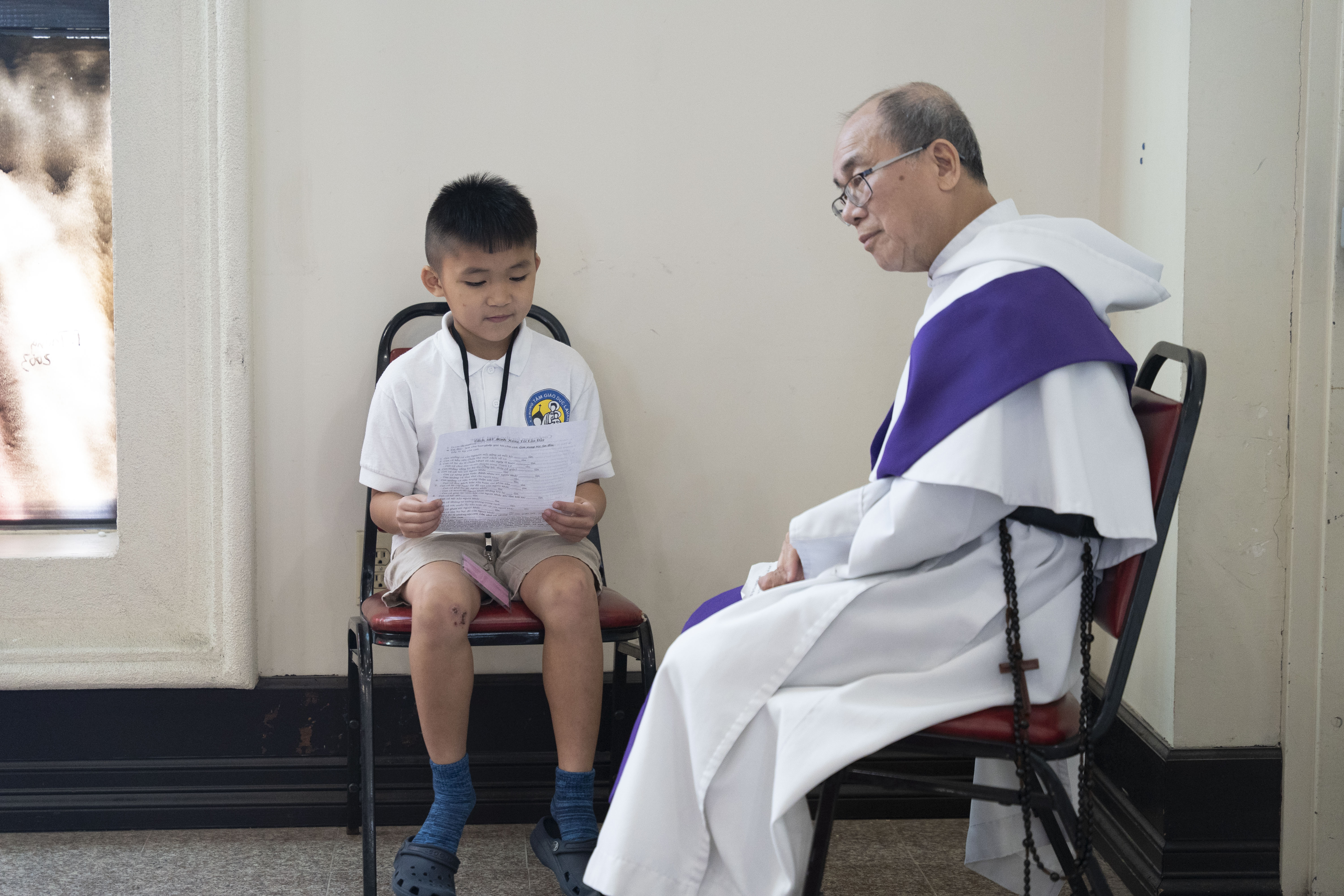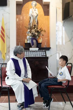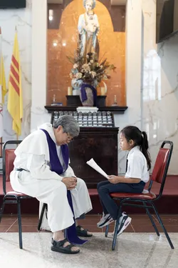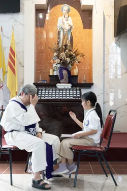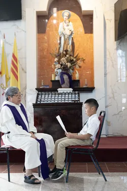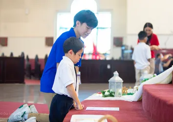 Hình ảnh các em xưng tội lần đầu do anh Trường Đỗ và anh Quang Nguyễn ghi lại