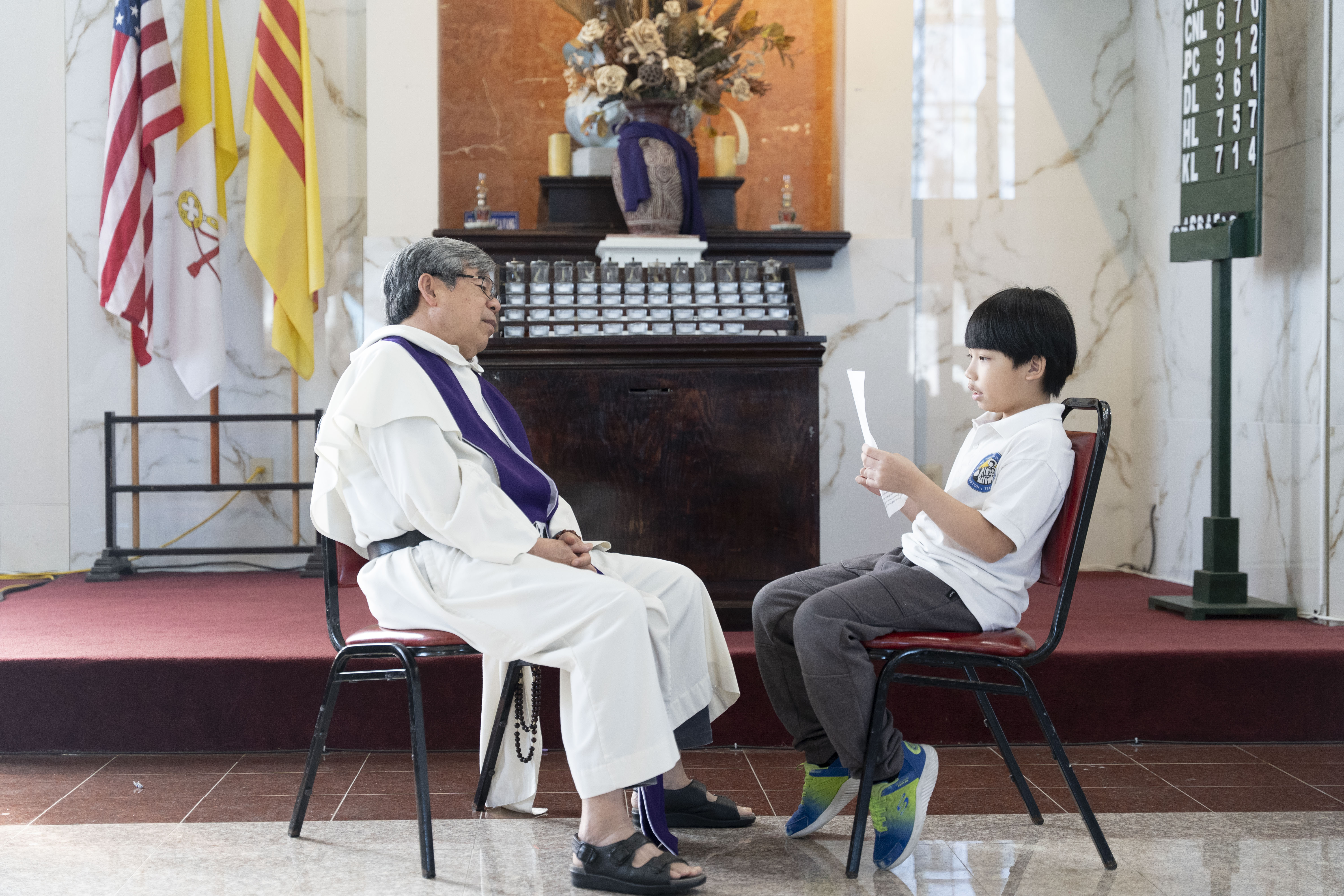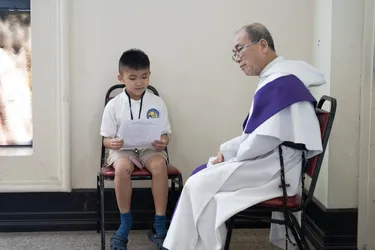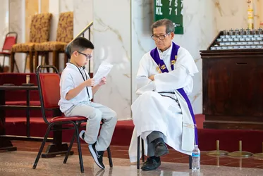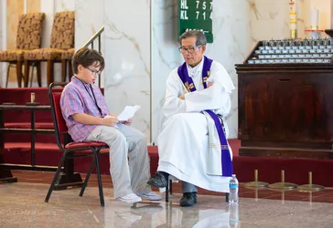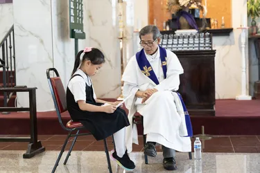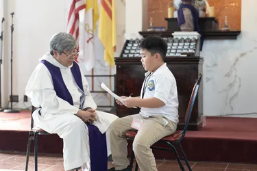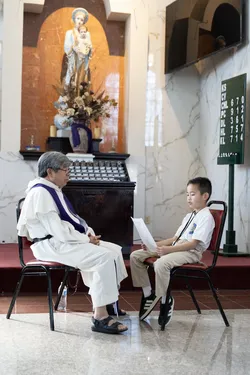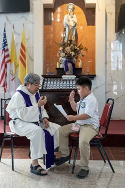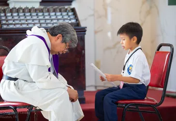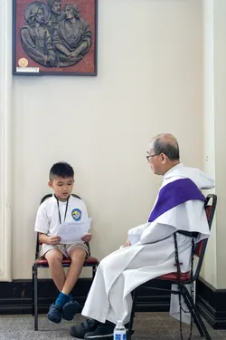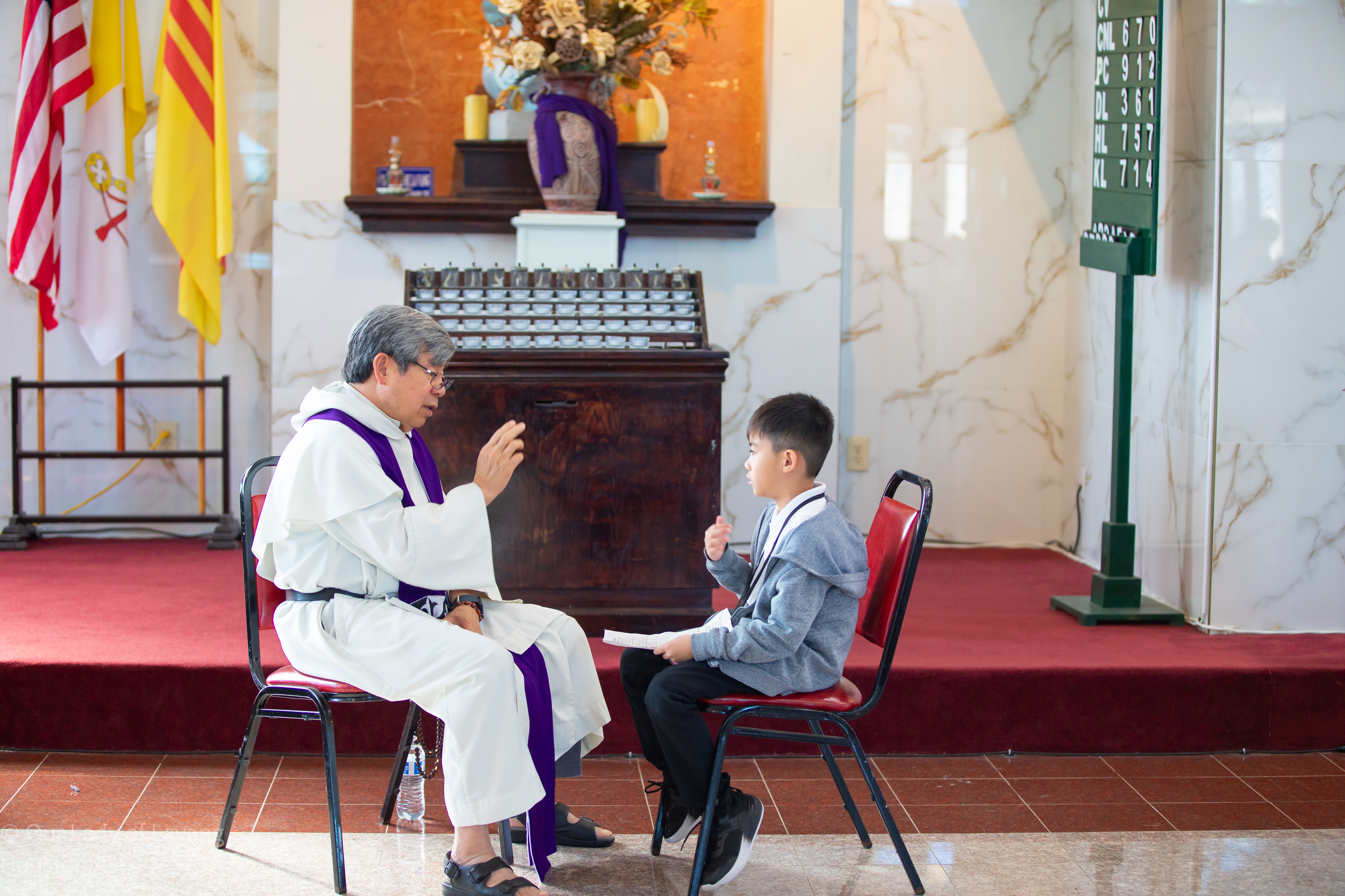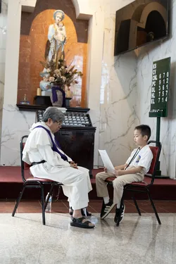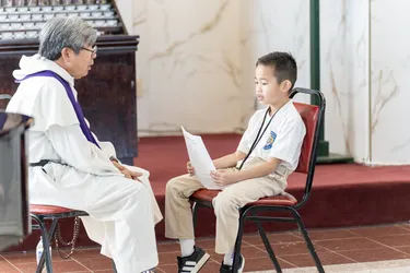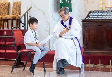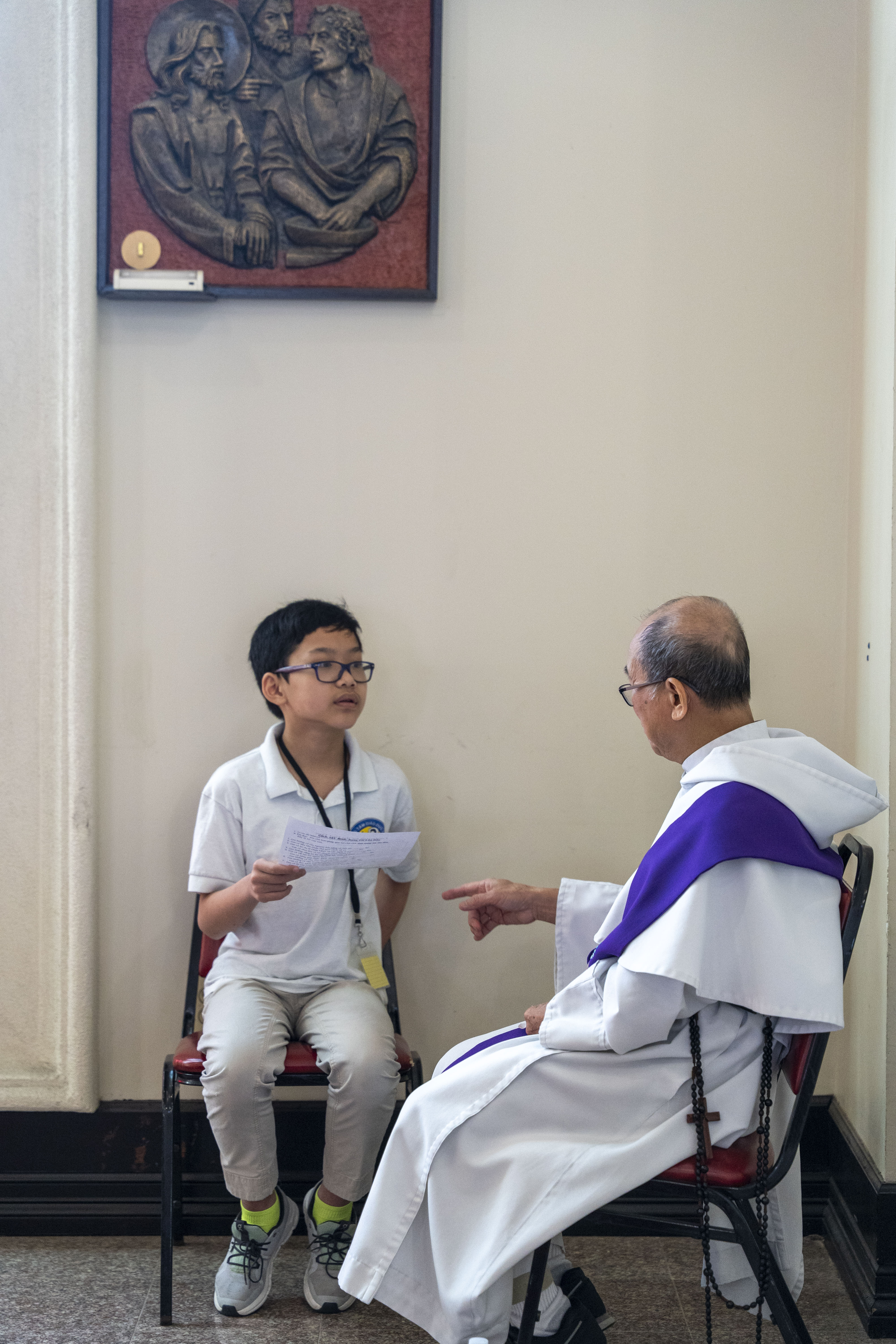 Hình ảnh các em xưng tội lần đầu do anh Trường Đỗ và anh Quang Nguyễn ghi lại
