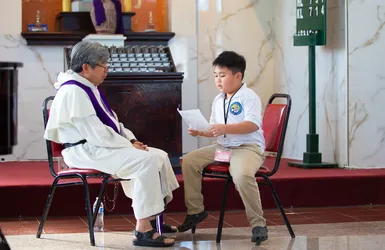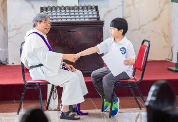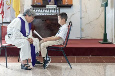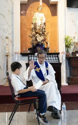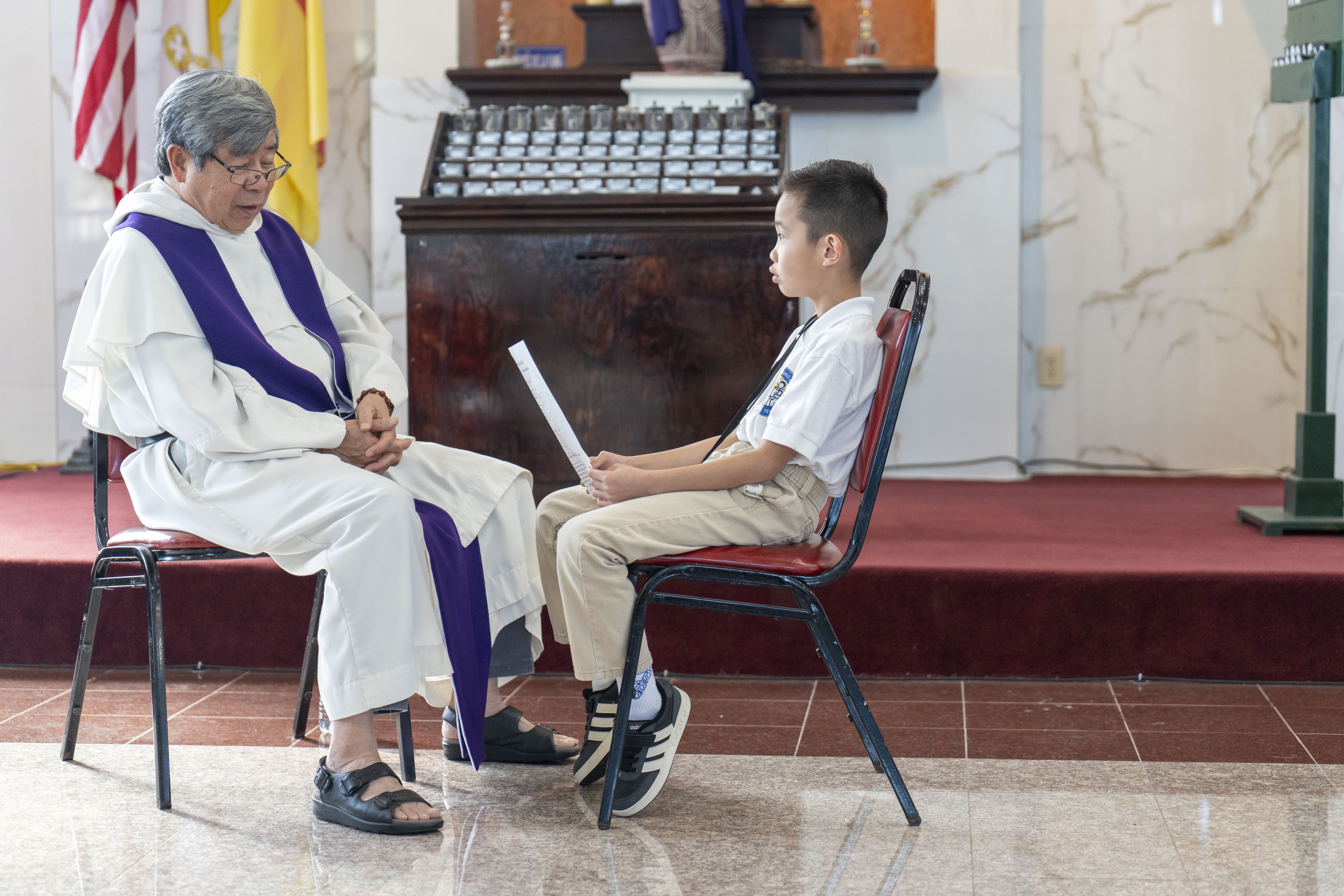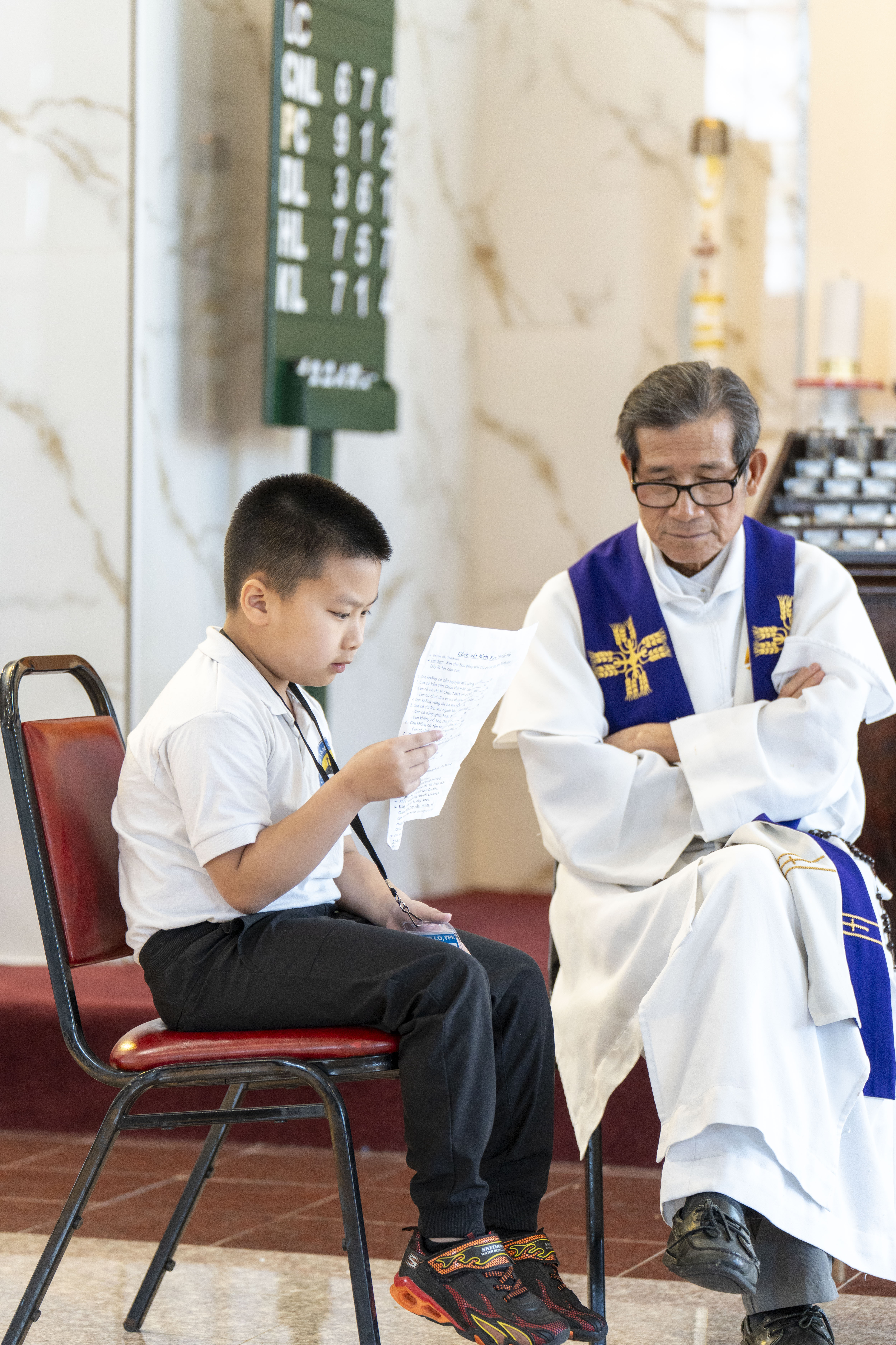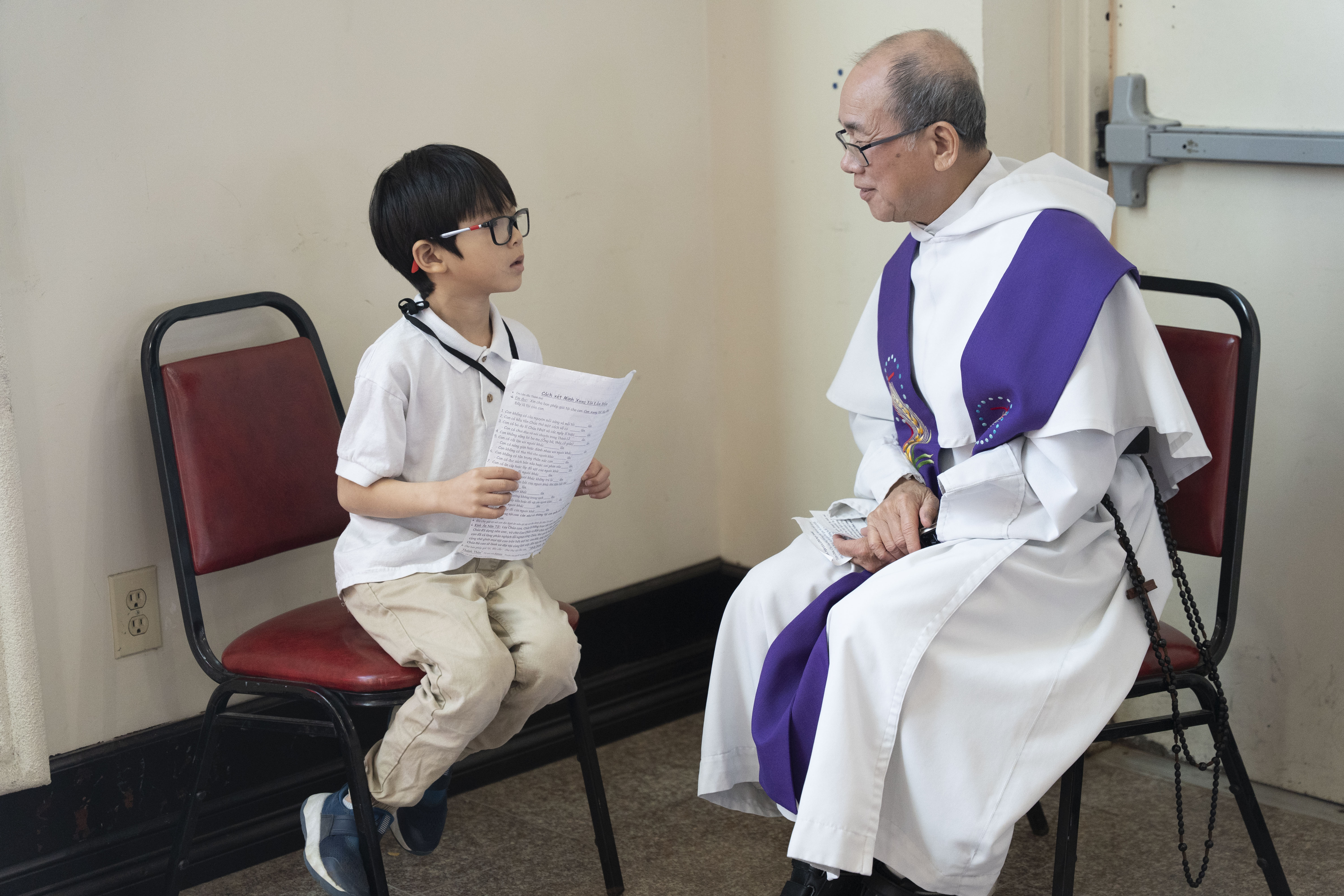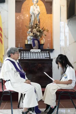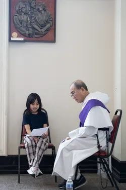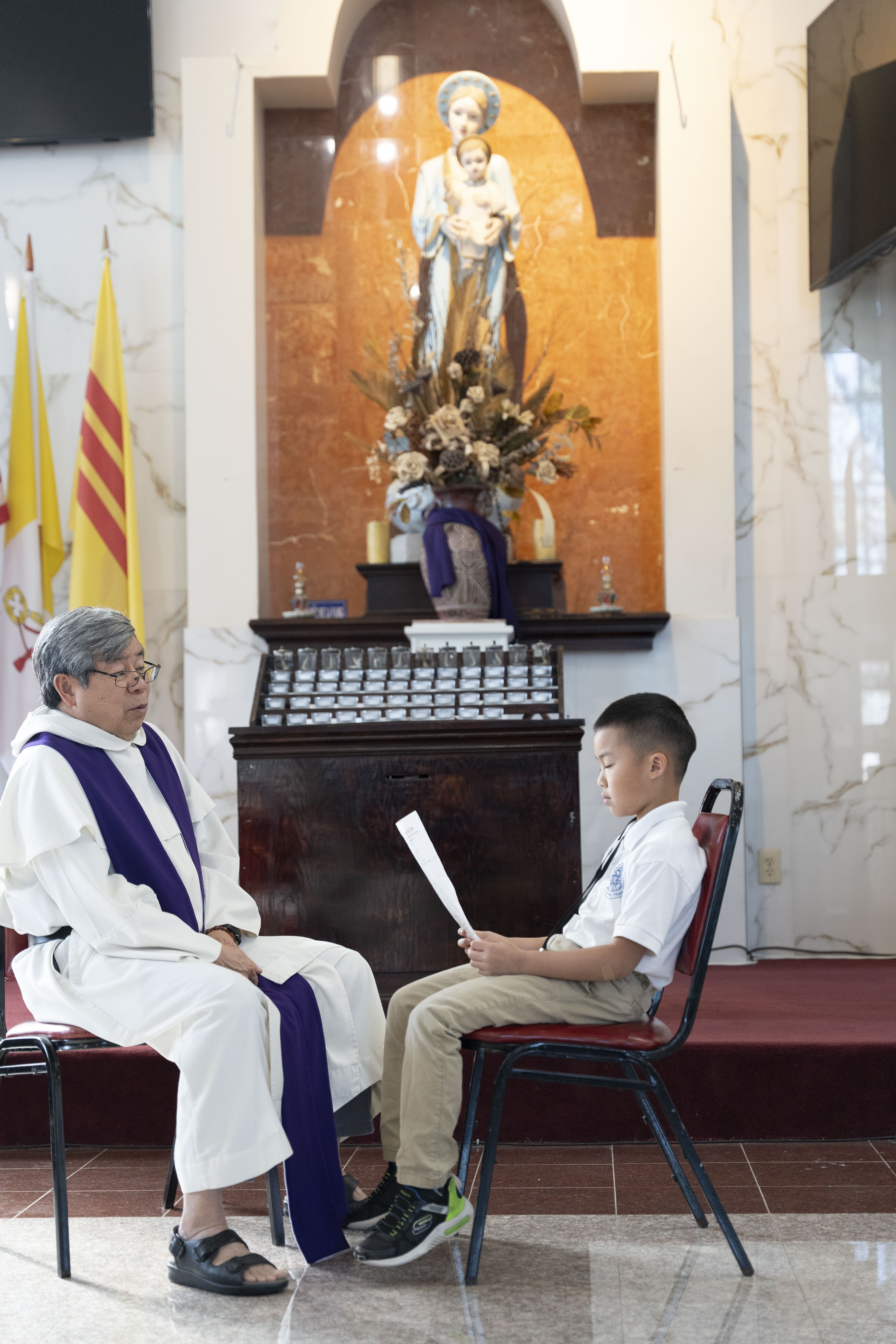 Hình ảnh các em xưng tội lần đầu do anh Trường Đỗ và anh Quang Nguyễn ghi lại