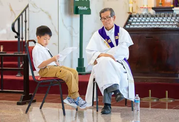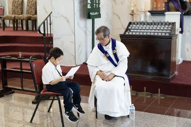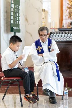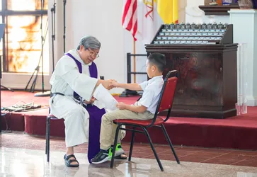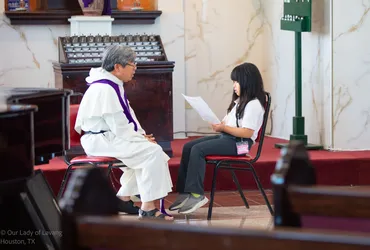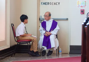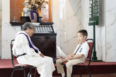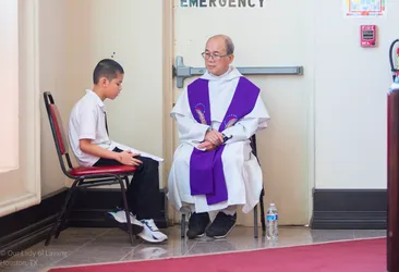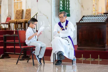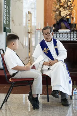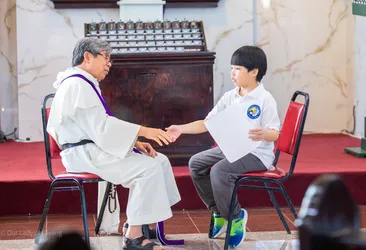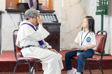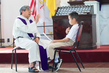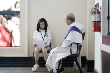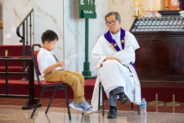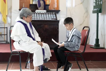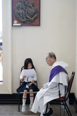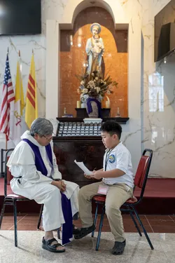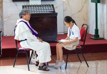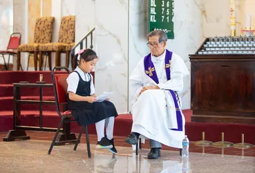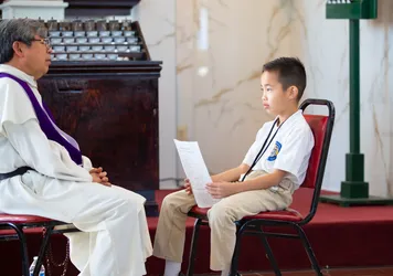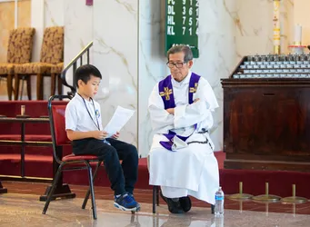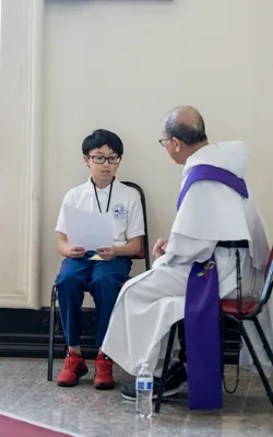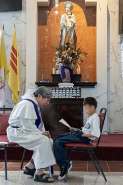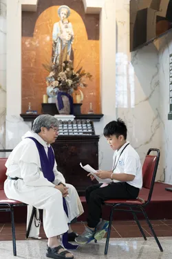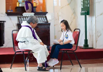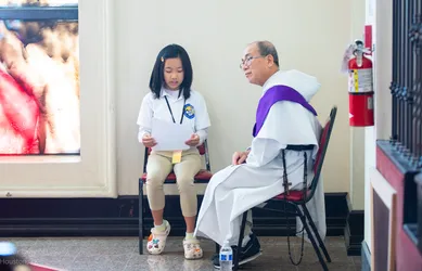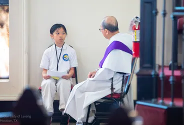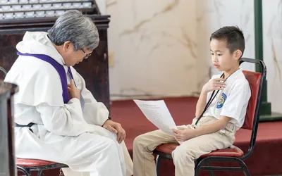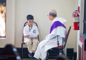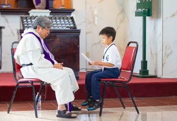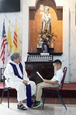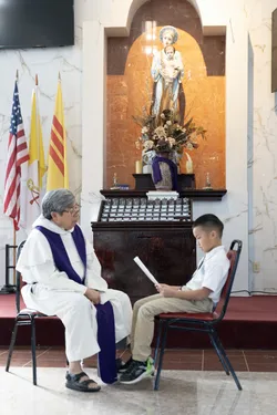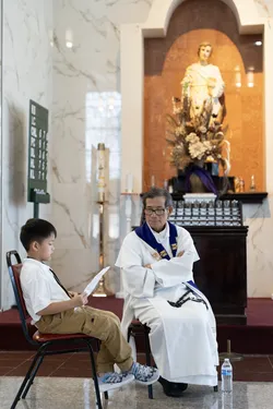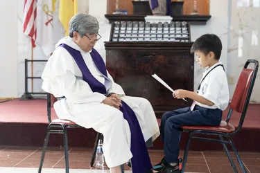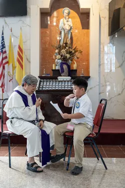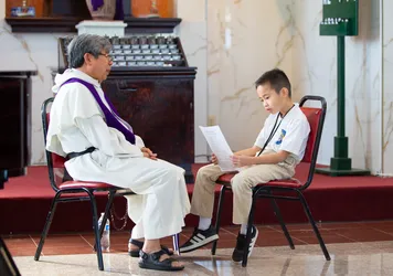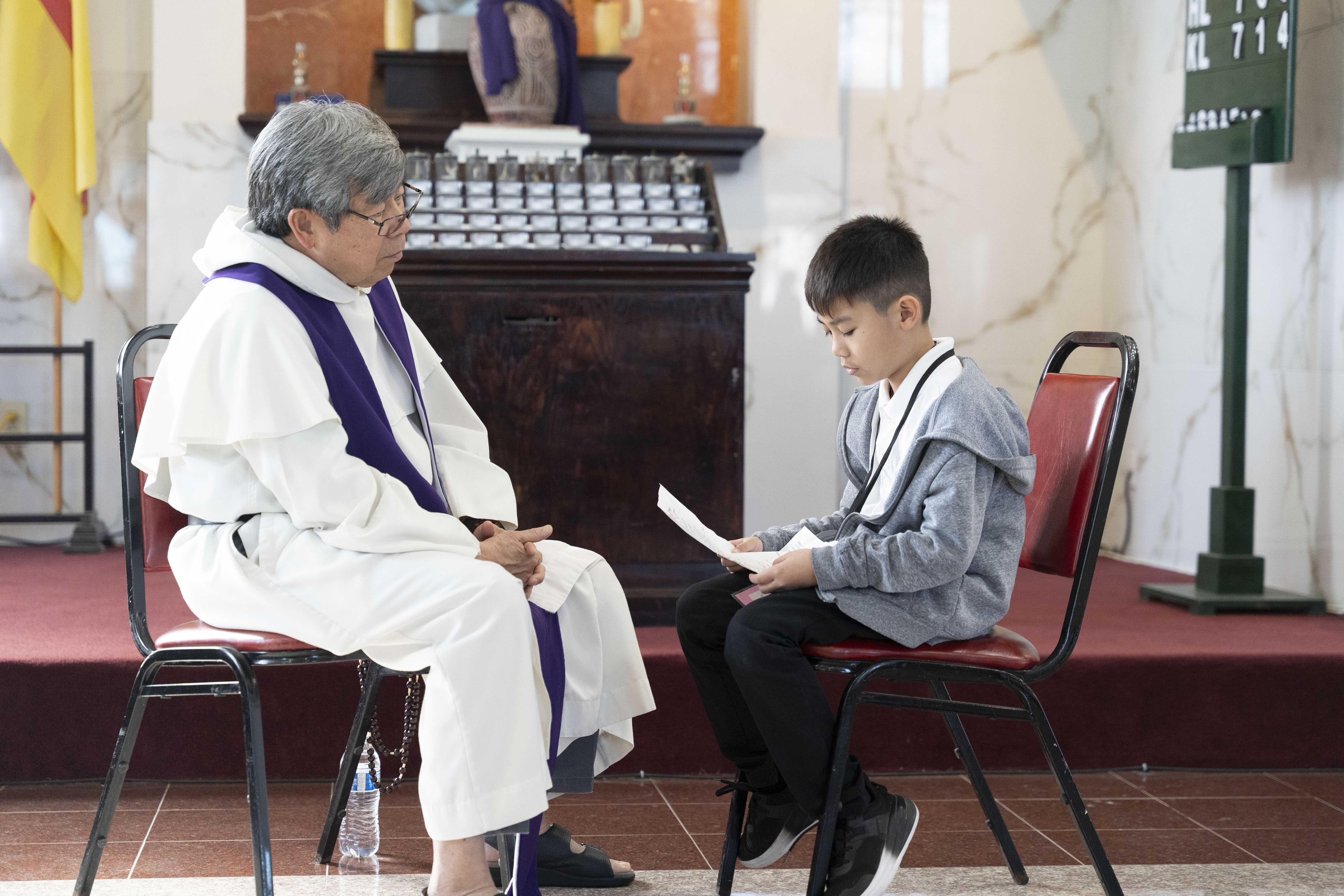 Hình ảnh các em xưng tội lần đầu do anh Trường Đỗ và anh Quang Nguyễn ghi lại