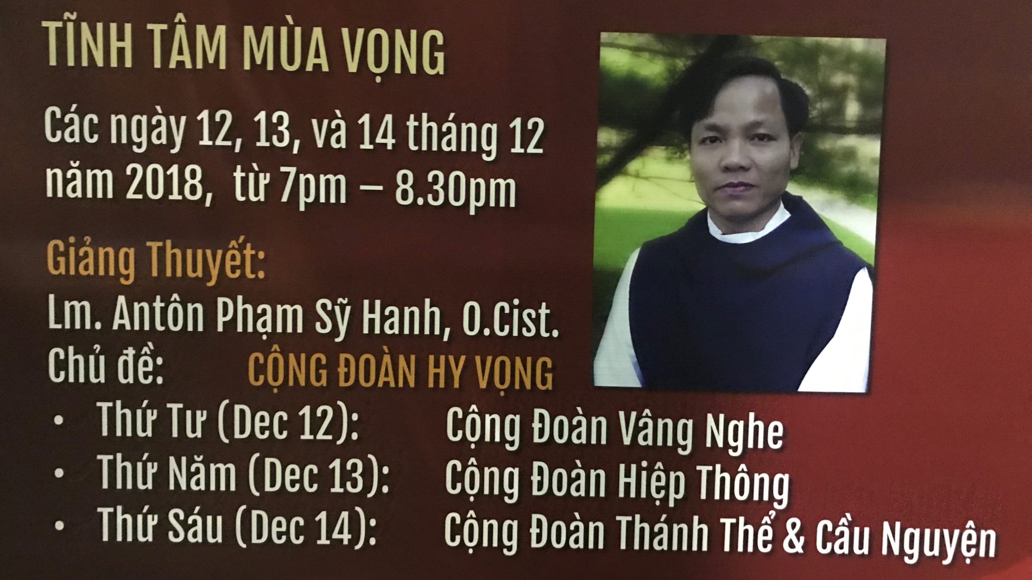 ⦁ TAM NHẬT VƯỢT QUA: ⦁ THỨ NĂM TUẦN THÁNH, ngày 18/4/2019 ⦁ Buổi sáng: sẽ KHÔNG có thánh lễ như thường lệ ⦁ Buổi chiều: sẽ CHỈ CÓ 1 thánh lễ lúc 7:30 tối bên Linh Đài Đức Mẹ La Vang- CĐ TNAS phụ trách thánh ca ⦁ Ngay sau thánh lễ: sẽ kiệu Thánh Thể qua bên Nhà Thờ Lớn và có giờ Chầu Thánh Thể chung của cộng đoàn ⦁ Từ 10:00 pm – 11:00 pm: Giờ Chầu của giới trẻ ⦁ Từ 11:00 pm – 12:00…